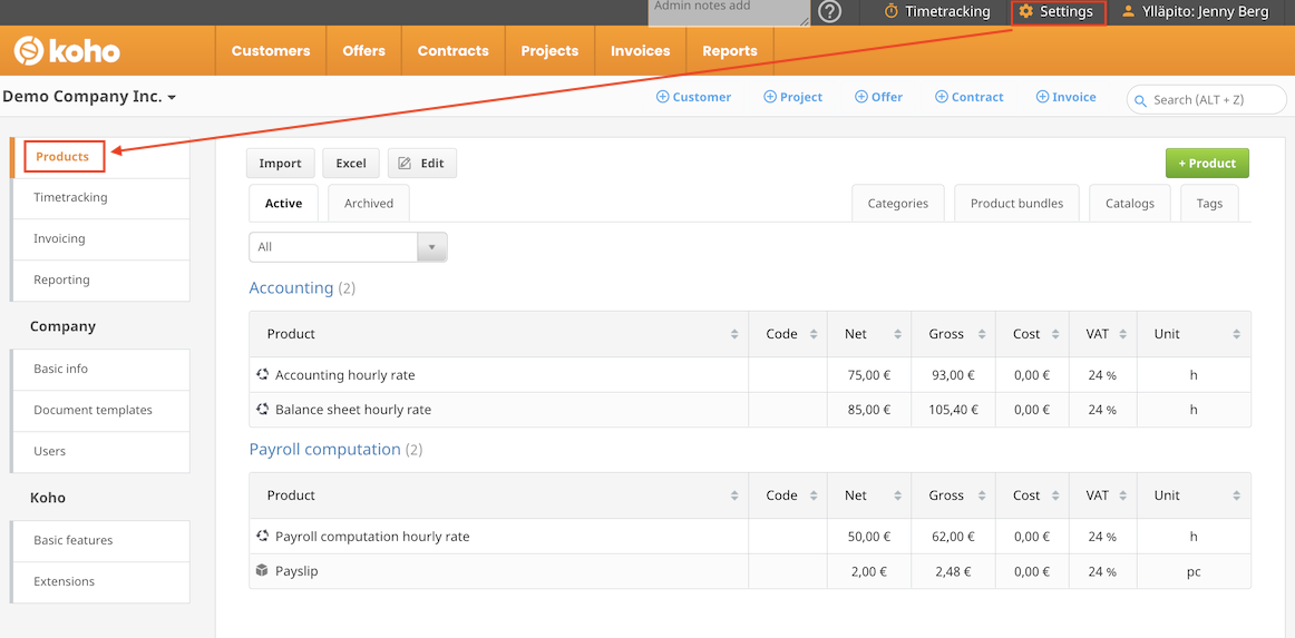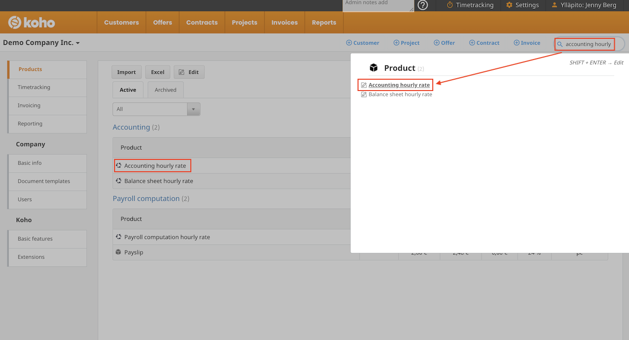 - Name is visible when you add the product to invoices, projects, work entries etc.