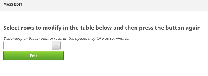 Once you have selected the products you want to edit, click the "Edit" button again. A window called "Mass edit" opens where you can choose how you want to edit the products. After making the selection, click the "Edit" button in the mass edit window.