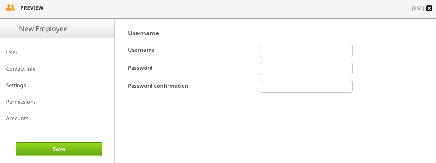 - Sales: Permissions to the "Sales" section. The different options are explained in this article under the "+User" title