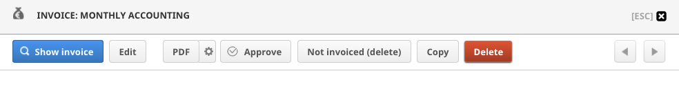 - Not invoiced (delete) this button can be used if you want delete a contractual invoice and mark it as externally invoiced.