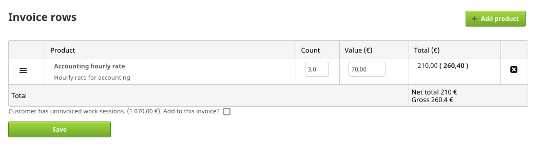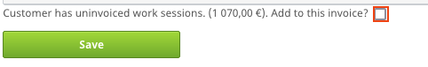 If the customer has uninvoiced work sessions, you can add them to the invoice by selecting the option.